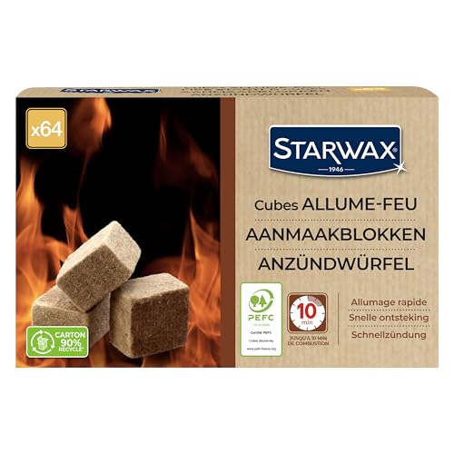 STARWAX - Cubes Allume-feu - Jusqu'à 10min de Combustion - Allumage Rapide Propre et sans Odeur - N'altère Pas la saveur des Aliments - PEFC - Lot de 64 Cubes