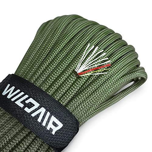 WILDAIR Paracorde de Survie en paracorde de Parachute 4 en 1 de 5/32" de diamètre Militaire américain de Type III avec Ligne de pêche intégrée, Allume-feu Amadou