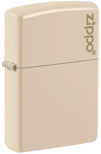 Zippo, Allume feu Véritable Briquet Coupe-Vent, Rechargeable, en métal Durable, Design emblématique, idéal pour Camping et extérieur, Rechargeable pour Une Utilisation à Vie, Flat Sand avec Logo