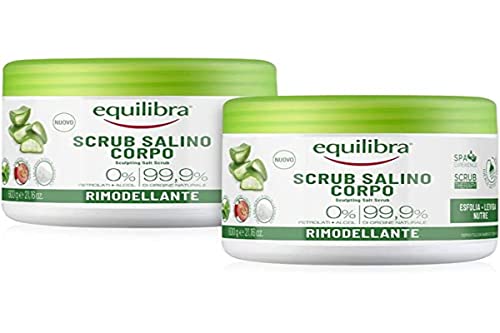 Equilibra Corpo, Scrub Salino remodelant, Scrub Corps exfoliant avec Aloe Vera, Lissage et Nutre la Cuir, Mélange de Sels Marins à Action Anti-eau, Huiles Naturels et extraits légumes, 2 pièces de 600 g