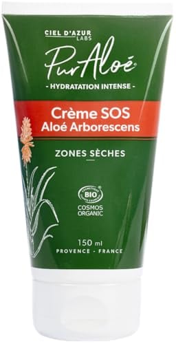 Ciel d'Azur Labs - Crème Bio SOS Pur’Aloé - Zones Sèches - Aloé Arborescens Natif - Hydratation Intense - Certifié Bio Cosmos Organic - 98,8% d'Origine Naturelle - Tube 150 ml