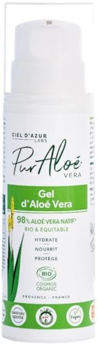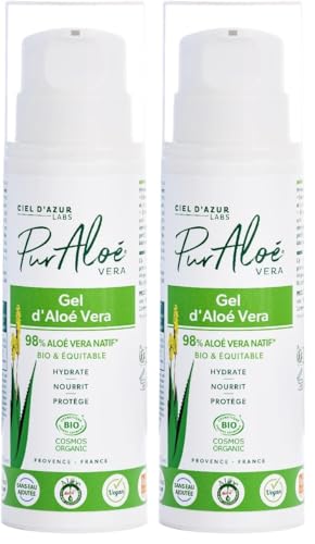 Ciel d'Azur Labs - Gel d'Aloé Vera Bio Pur Aloé - 98% Aloé Vera Natif Bio & Équitable - Visage et Corps - Certifié Bio Cosmos Organic - Flacon 250 ml & Crème de Jour à l'Aloe Vera Vivant 67% Bio 50 ml