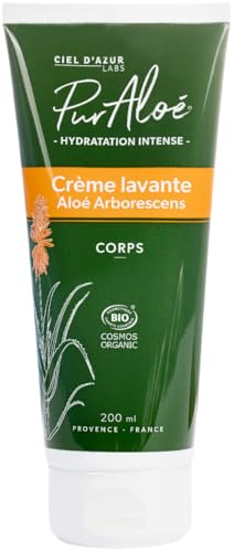 Ciel d'Azur Labs - Crème Lavante Bio Pur’Aloé - Aloé Arborescens Natif & Aloé Vera Bio - Corps - Hydratation Intense - Certifié Bio Cosmos Organic - 98% d'Origine Naturelle - Tube 200 ml