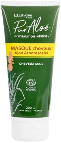 Ciel d'Azur Labs - Masque Cheveux Bio Pur’Aloé - Aloé Arborescens Natif - Cheveux Secs - Hydratation et Soin Intenses - Certifié Bio Cosmos Organic - 98% d'Origine Naturelle - Tube 200 ml