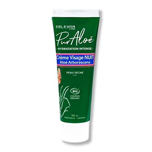 Ciel d'Azur Labs - Crème Visage Nuit Bio Pur’Aloé - Aloé Arborescens Natif & Aloé Vera Bio - Hydratation Intense - Certifié Bio Cosmos Organic - 98,5% d'Origine Naturelle - Tube 50 ml