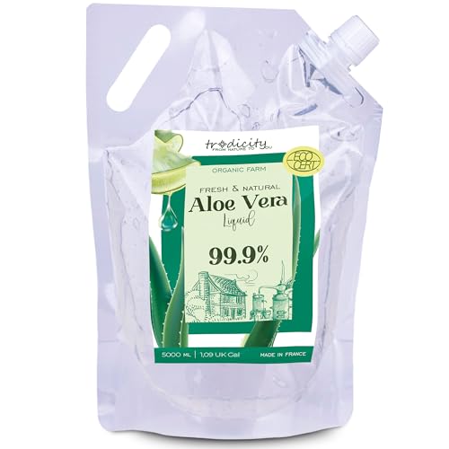 Aloe Vera Pur Liquide 100% Naturel BIO : Hydratant, Apaisant et Réparateur, Tonique et Nettoyant Facial, Après-Soleil, Épilation et Rasage, Sérum Anti-Âge. COSMÉTIQUE FAITE MAISON - 5000 ml