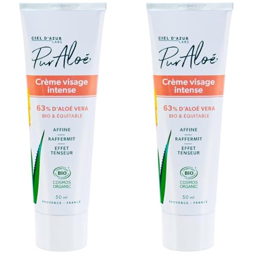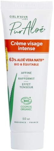 CIEL D'AZUR LABS - Crème Visage Bio Pur’Aloé - Aloé Arborescens Natif - Hydratation Intense, Visage et Cou - Certifié Bio Cosmos Organic - 98,8% d'Origine Naturelle - Tube 50 ml
