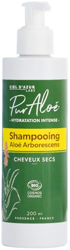 Ciel d'Azur Labs - Shampooing Bio Cheveux Secs Pur’Aloé - Aloé Arborescens Natif - Hydratation Intense - Certifié Bio Cosmos Organic - 97,7% d'Origine Naturelle - Flacon Pompe 200 ml