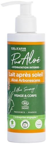 Ciel d'Azur Labs - Lait Après-Soleil Pur’Aloé - 50% Aloé Arborescens Natif - Corps - Hydratation Intense - Certifié Bio Cosmos Organic - 98% d'Origine Naturelle - Flacon 200 ml
