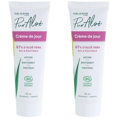 Pur Aloé Crème de Jour à l'Aloe Vera Vivant 67% Bio 50 ml (Lot de 2)