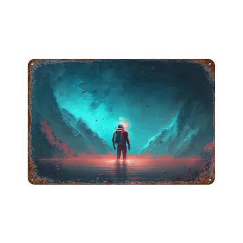 sinyumoney Astronaut Alone in Dark Plaque En Métal Vintage Style Rétro Pour La Maison, Le Jardin, La Ferme, Le Salon, Les Clubs D'extérieur7.9"x11.8"