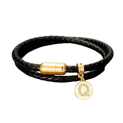 HUIANGLIYG Bracelet enveloppant en Cuir avec Initiales Bracelet Tressé Noir Double Couche avec Fermoir Magnétique Zircone 26 Lettres Alphabet A Z Bijoux Personnalisés Stylés pour Hommes Lettres