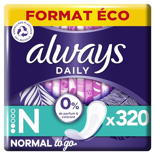 Always Daily Fresh Protège-Slips Normal Pochettes Individuelles 16x20 Unités, 0% de parfum et colorant, Pour ne sentir rien d’autre que fraîcheur et protection