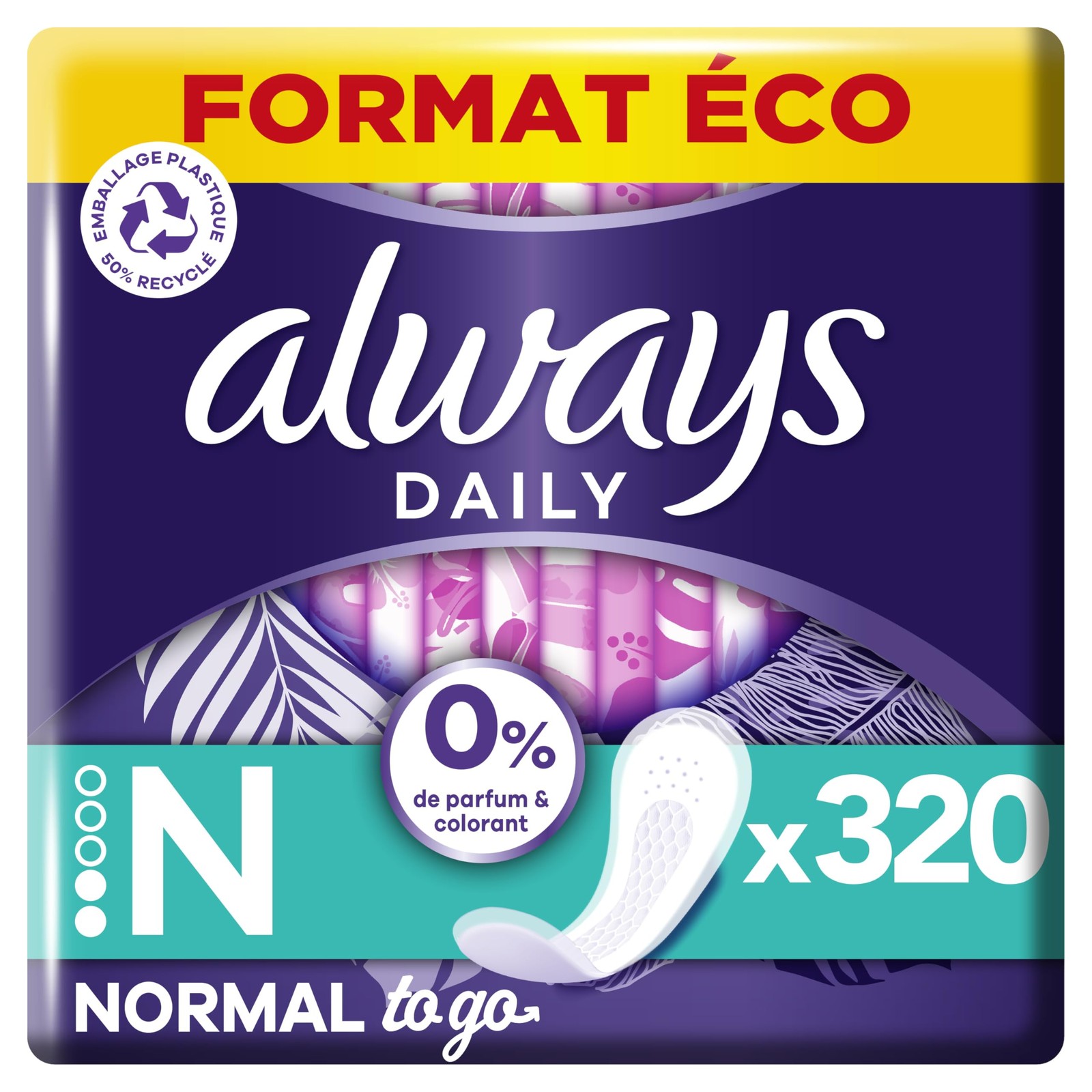 Daily Fresh Protège-Slips Normal Pochettes Individuelles 16x20 Unités, 0% de ...