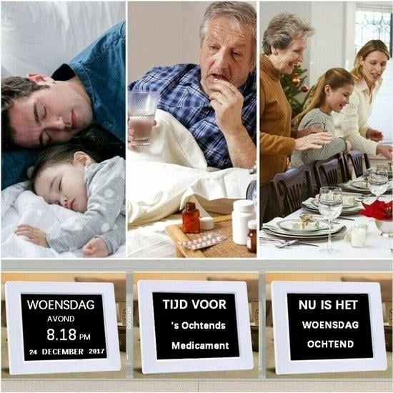 8" LCD Horloge Numérique Calendrier avec Date, Jour et Heure | Horloge Alzheimer pour Les Seniors,C'est pour Les Parents (Blanc)