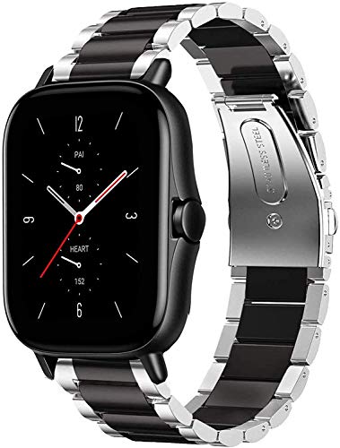 SkyBand Metal Acier Classique Bracelet De Remplacement Compatible pour Montres connectées Amazfit GTS 2 (Noir & Argent)
