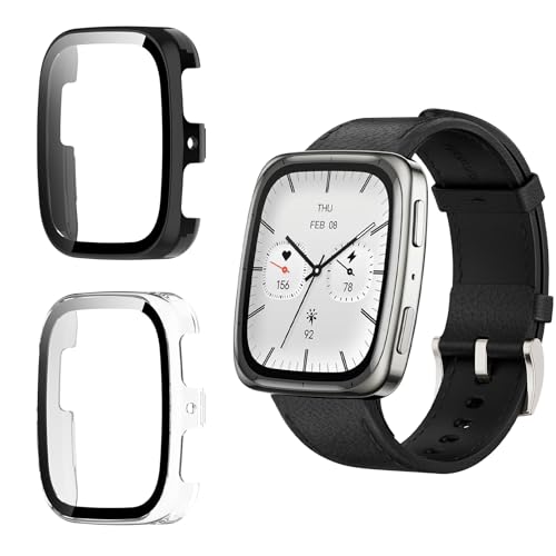 Funrae Coque Compatible avec Amazfit Active 2 Square [2 pièces], Case Protection Étui avec Verre trempé Protecteur D'écran PC Coque Anti-Rayures Bumper Couverture Complète - Transparent&Noir