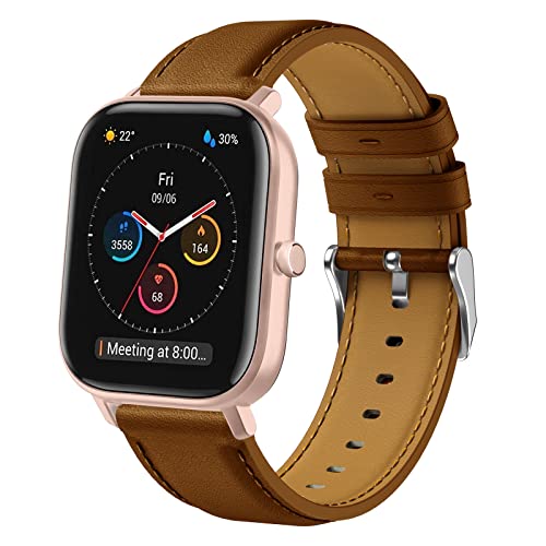 ToVioc 20mm Bracelet Compatible avec Amazfit Active 2 Square/2/1, Bip 3/3 Pro, Bracelet Cuir Haute Qualité pour Amazfit GTS 4/4 Mini/3/2/2e/2 Mini - Brun
