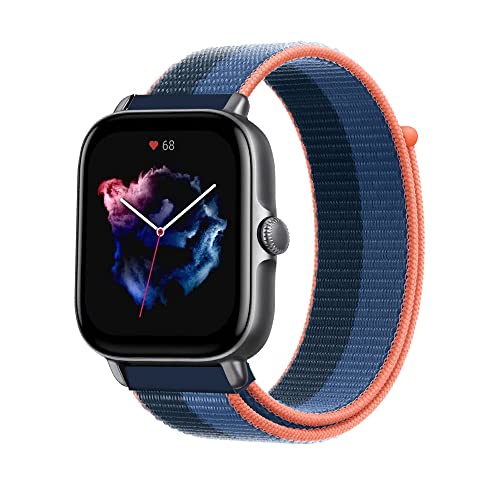 Niboow 20mm Bracelet pour Amazfit GTR Mini/GTS 4/GTS 3/GTS 4 Mini/GTS 2 Mini/GTS 2e/GTS 2/GTS/GTR 42mm, Nylon Respirant Réglable Bracelet pour Amazfit Bip 3 Pro/Bip S/Bip Lite/Bip U Pro-Bleu-2
