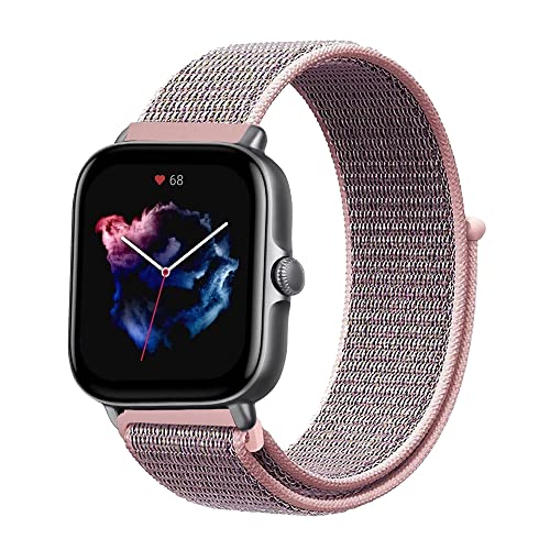 Niboow 20mm Bracelet pour Amazfit GTR Mini/GTS 4/GTS 3/GTS 4 Mini/GTS 2 Mini/GTS 2e/GTS 2/GTS/GTR 42mm, Nylon Respirant Réglable Bracelet pour Amazfit Bip 3 Pro/Bip S/Bip Lite/Bip U Pro-Rose