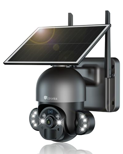 Ctronics Camera Exterieur sans Fil Solaire 6 W, 3K 5MP Caméras de Surveillance avec Détection PIR et Humaine, 10 Projecteurs LED & Vision Nocturne en Couleur, FTP, Compatible PC/Téléphone
