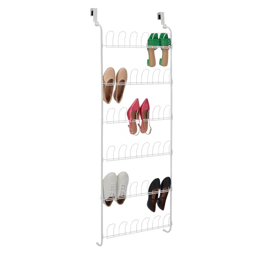 Amazon Basics Rangement à chaussures sur porte en métal, 18 paires, Blanc, 56 x 14 x 153 cm