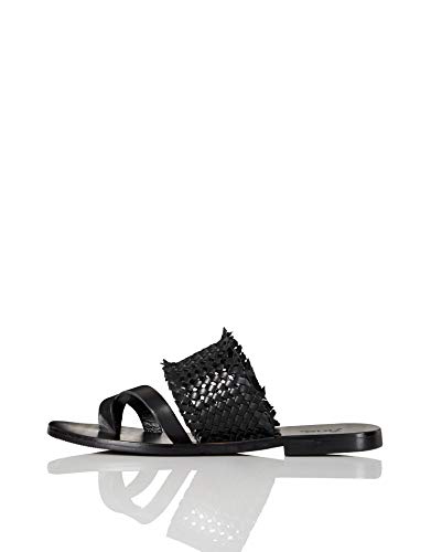 Marque Amazon - FIND Flat Toe Thong Weave Leather Sandal Bout Ouvert, Noir (Black), 39 EU