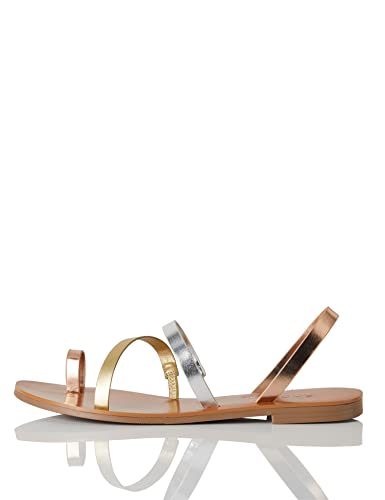 Marque Amazon - FIND Flat Gladiator Spartiates, Multicolore (Metallic Multi), 40 EU
