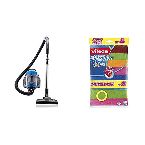 Amazon Basics Aspirateur cylindrique cyclonique sans sac, 2 litres, 700 W, avec contrôle d’aspiration EU (17K) & Vileda Colors Lavettes microfibres dépoussiérantes et dégraissantes - 8 pièces
