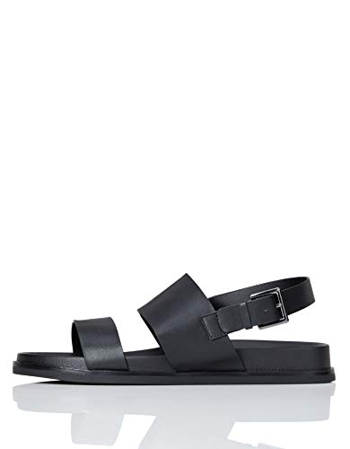 Marque Amazon - Trouvez Sandales ouvertes en cuir pour femme - Noir - Noir (Black), 38 EU