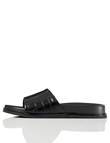 Marque Amazon - Trouvez Mule Footbed Sandales ouvertes en cuir pour femme - Noir - Schwarz (Black Croc), 38 EU