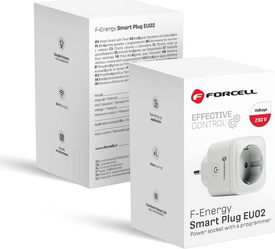 FORCELL F-ENERGY EU02 Smart Plug 230V avec WiFi, programmateur et support Tuya/Amazon Alexa - blanc