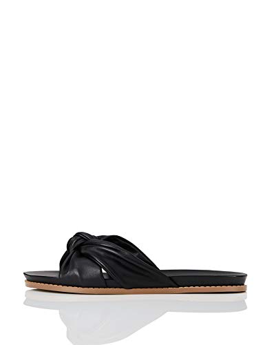 Marque Amazon - Trouvez Sandales ouvertes à nœud pour femme - Noir - Noir (Black), 38 EU