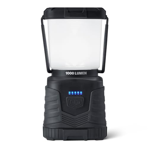 Amazon Basics Lanterne de Camping LED avec 4 Modes d'Éclairage - Lampe Portable 1000 Lumens avec Éclairage à 360° - Lanterne Résistante à l'Eau - Piles Non Incluses - Noir