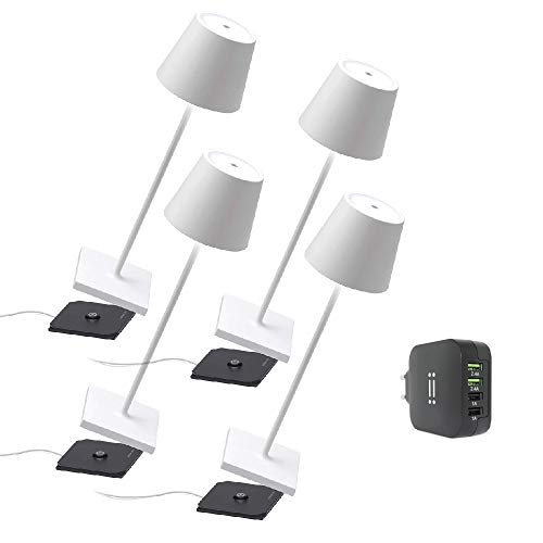 [AmazonExclusive] Zafferano Set 4x lampes portables Poldina Pro, chargeur quadruple USB Aiino pour charger lampe/smartphone en simultané, LED tactile réglable, base de charge à contact, H38cm - Blanc