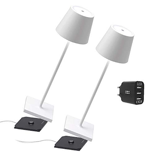 [AmazonExclusive] Zafferano Set 2x lampes portables Poldina Pro, chargeur double USB Aiino pour charger Lampe/Smartphone en simultané, LED tactile à gradation, base de charge à contact, H38cm - Blanc