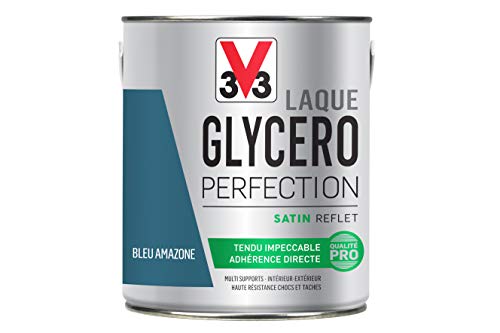 V33 Peinture multi-supports monocouche Laque Glycéro satin, Bleu Amazone, 0,5L