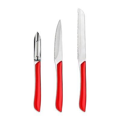 Amefa Solstice Rouge - Set 3 couteaux office, éplucheur, petits-légumes