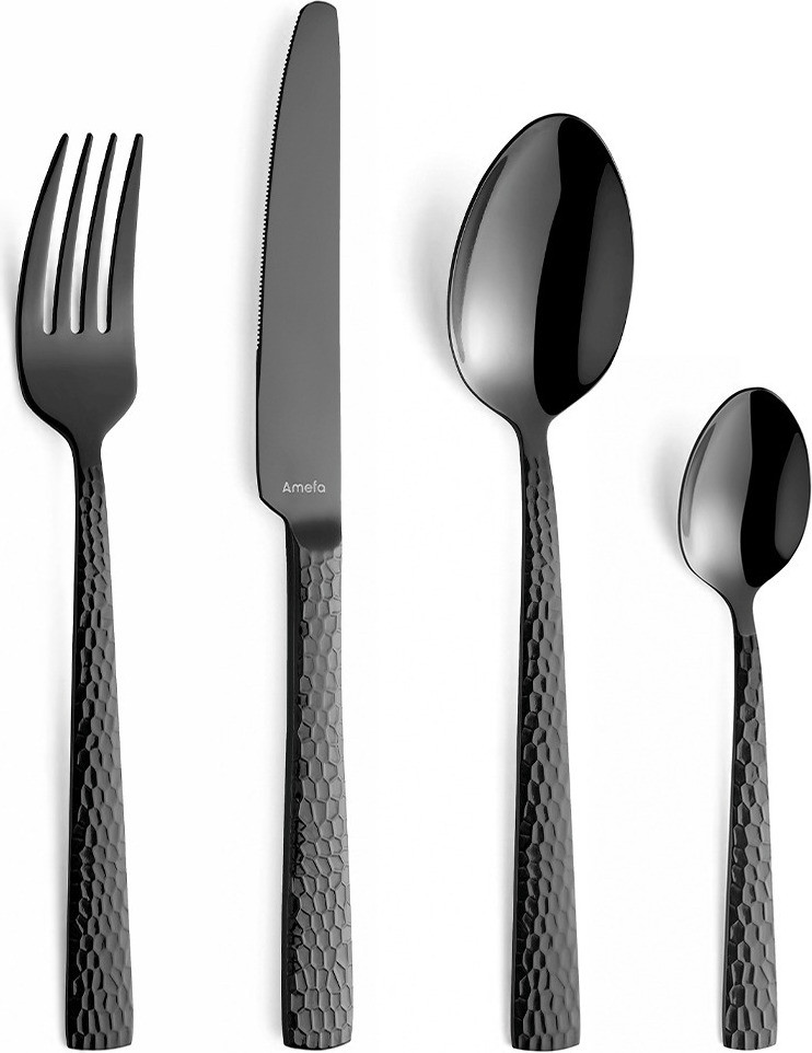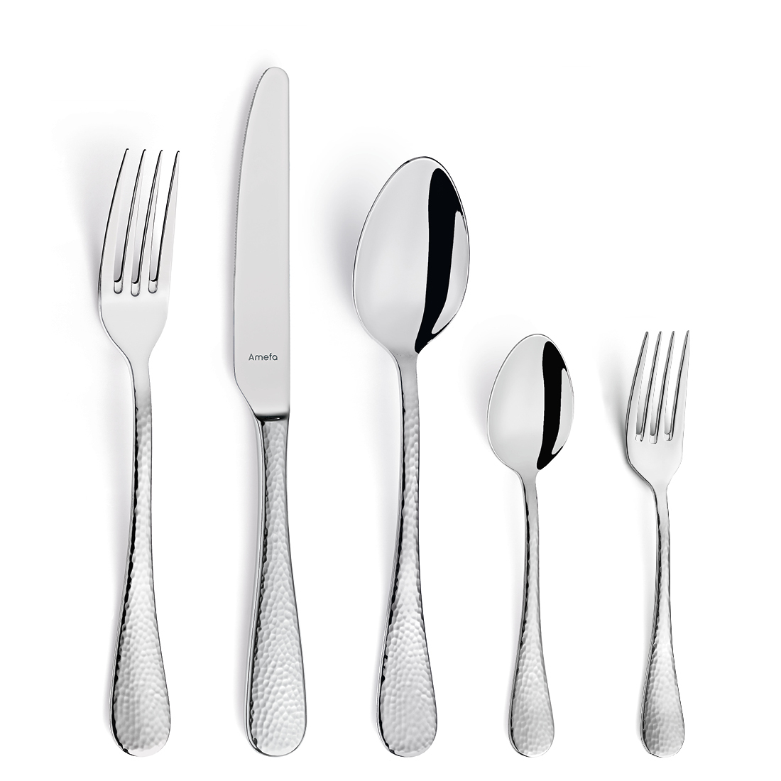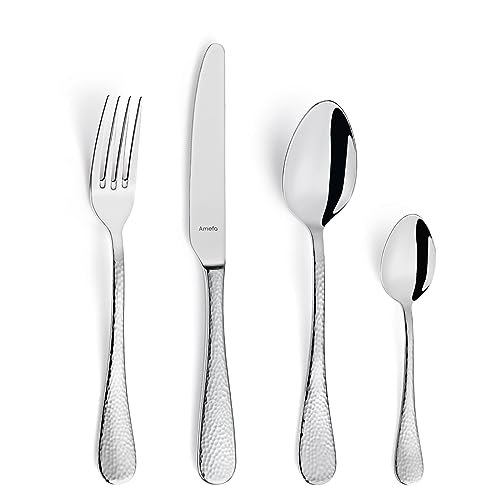 Amefa SIERRA Set de couverts pour 6 personnes | 24 pièces | Acier inoxydable 18/10 satiné | Poignées martelées | Couverts passent au lave-vaisselle | Set de couverts pour 6 personnes | Parfaitement