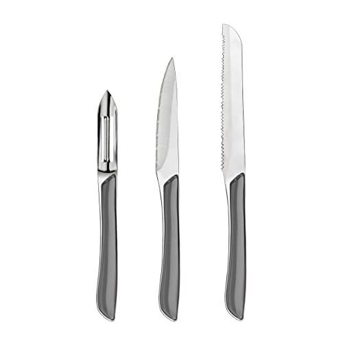 Amefa - Set de 3 couteaux de cuisine - Couteau office, éplucheur et couteau petits-légumes - Eclat - Acier inoxydable 13 C, Finition Brillante - Gris