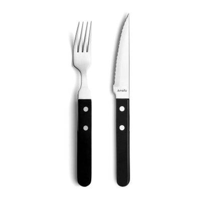 Amefa Steak Pizza Noir - Set de 6 couteaux et fourchettes