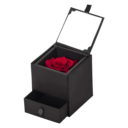 Rose Amor GBK-RED-02 Coffret Cadeau avec Tiroir Véritable Rose Rouge Stabilisée, 8.5cm x 8.5 cm x 9.5 cm