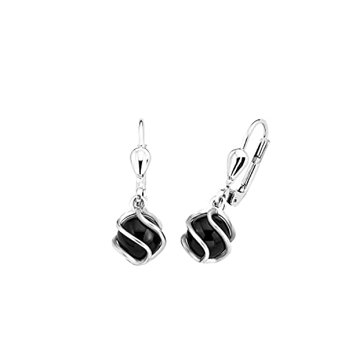 Amor Boucles d'oreilles pour femme en argent sterling 925, avec onyx, 2,2 cm, argent, livrées dans un coffret cadeau, 2017170