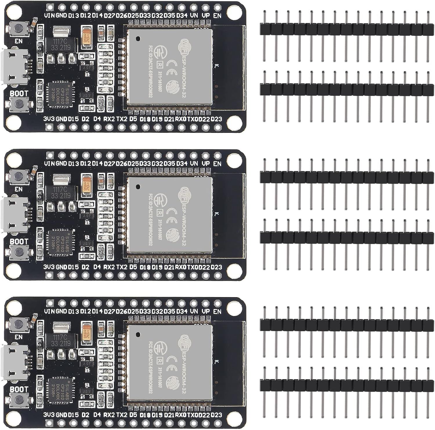 3 Pack ESP-32S ESP32 Carte de développement, Antenne Module 2.4GHz WiFi+Bluetooth 2-en-1 Dual Core avec d'énergie Ultra Basse, antenne RF Amp Filtre AP STA Arduino IDE