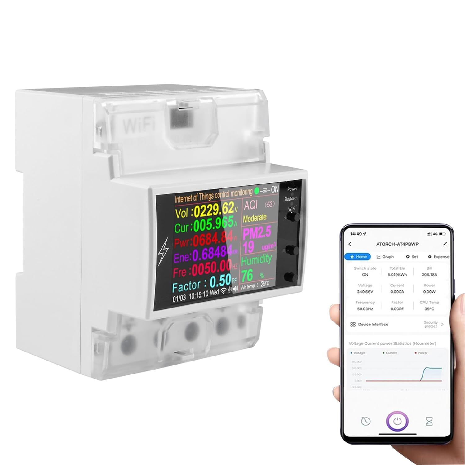 LIKO-Compteur D'Énergie 100A Wifi Din Rail Télécommande Pour Interrupteur Intelligent,Moniteur Numérique De Consommation D'Énergie,Ac85-265V Compteur Digital Volt Amp Kwh Facteur De Fréquence