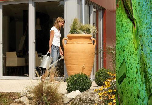 GARANTIA Réservoir Amphore ANTIK 360L terracotta avec bac à plantes - charme méditerranéen pour votre jardin