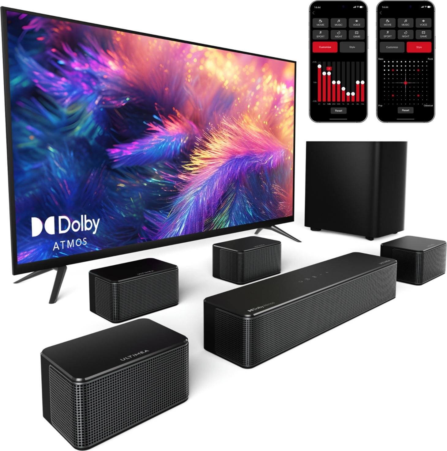 Barre de son ULTIMEA 7.1 Dolby Atmos pour TV, Système de son surround home cinéma, Poseidon D80 Boom