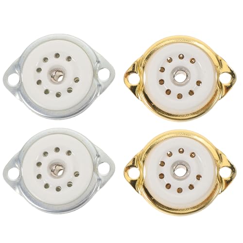 VICASKY Douilles Tubulaires en Céramique 4 Pièces, Supports de Broches de Tubes à Vide 9 Broches Plaquage Étain et Or, Accessoires pour Ampli Guitare et Tubes à Vide, Pièces