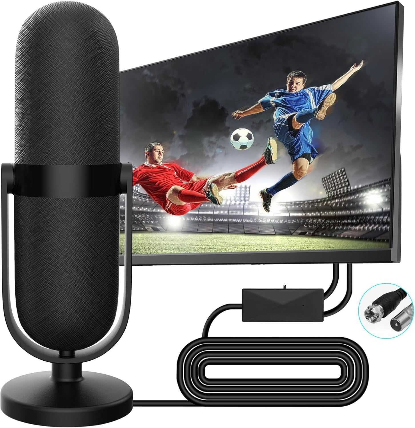 Antenne TV Puissante pour Intérieur et Extérieur,Forme de Microphone Gratuite Rotation 360° Antenne VHF/UHF HD,VHF/UHF Amplificateur Signal Prendre en Charge de TV 4K 1080P HDTV Gratuites