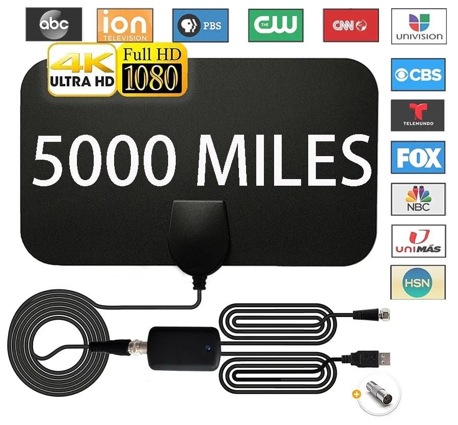 Antenne TV 4K pour TV numérique globale,1080P,5000 Mile,amplificateur HD pour montres,extérieur,voiture,intérieur,récepteur de signal TV intelligent - Type Only TV Antenna